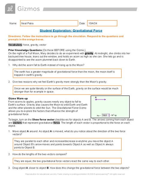 Free PDF Gravitational force gizmo answer key Library Binding BookBoon